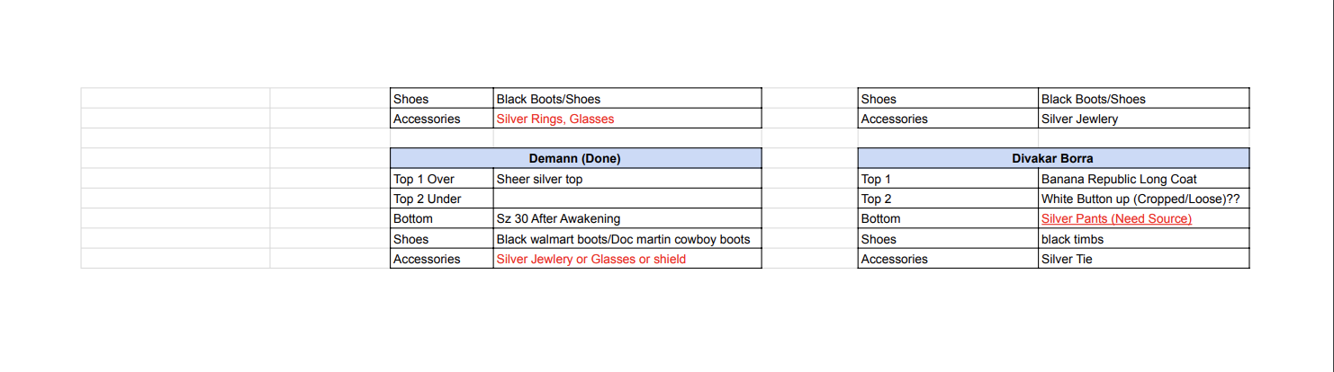 I was assigned a total of 10 models—5 female and 5 male. To ensure each model’s outfit fit perfectly, I began by collecting detailed information about their height and clothing sizes. I organized this data in a comprehensive spreadsheet, creating individual tables for each model to track their specific needs. The spreadsheet included key details such as model names, Instagram handles, heights, sizes for tops, bottoms, and shoes, as well as any accessories required to complete their looks. This system allowed me to efficiently source and coordinate the pieces for each outfit.