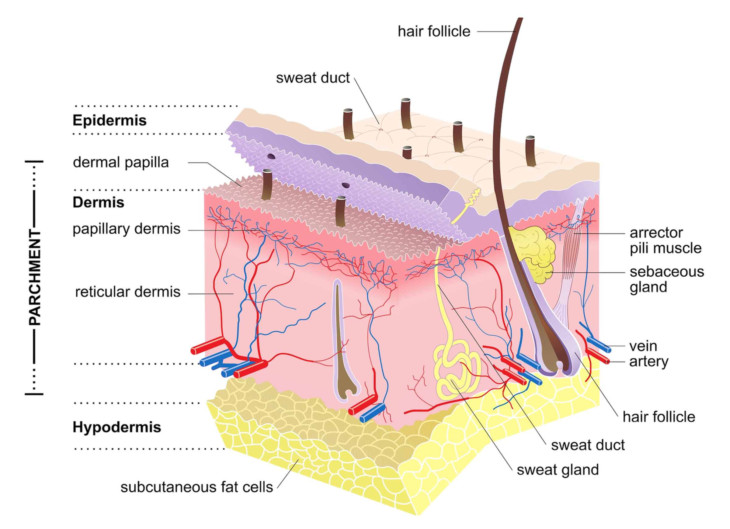 Epidermis: The outer layer, acting as a barrier against infection and water loss, inspired the garment’s durable outer shell.
